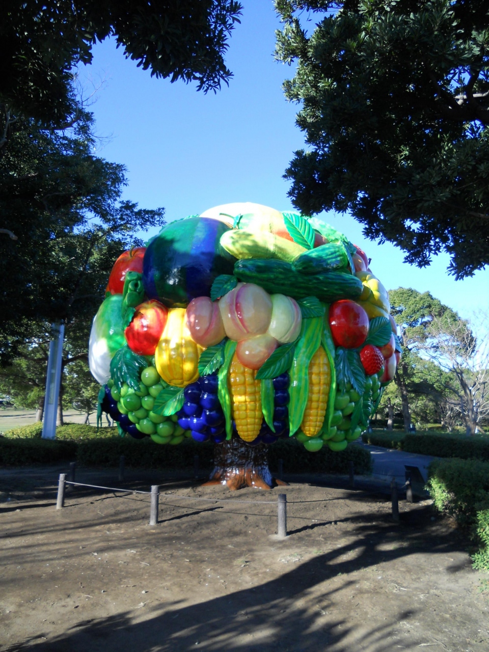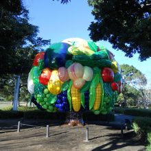 カラフルなフルーツのオブジェは緑豊かな公園の中で目立っていました。