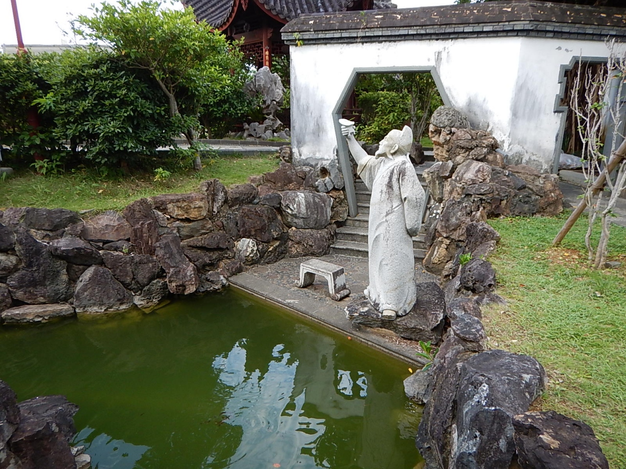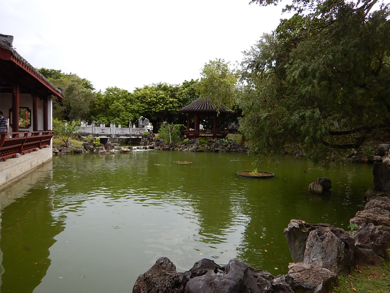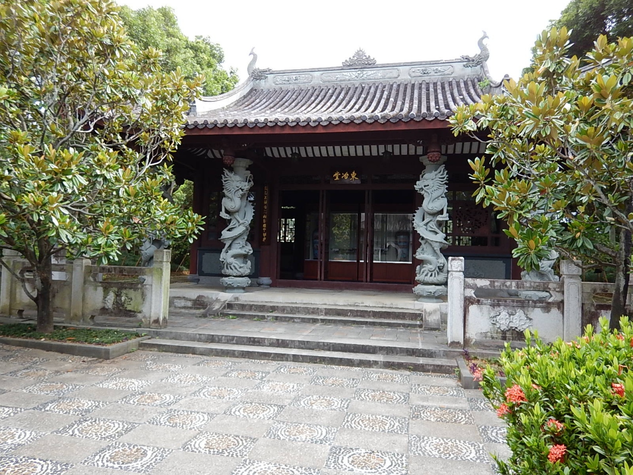 ガジュマルやシュロのような沖縄の草木が生い茂るが、あくまで建物は中国様式。