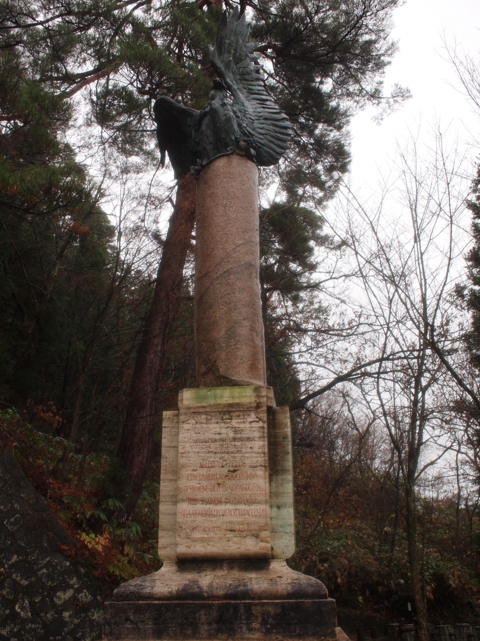 広場には白虎隊の精神に感動したローマ市から寄贈された柱があります。