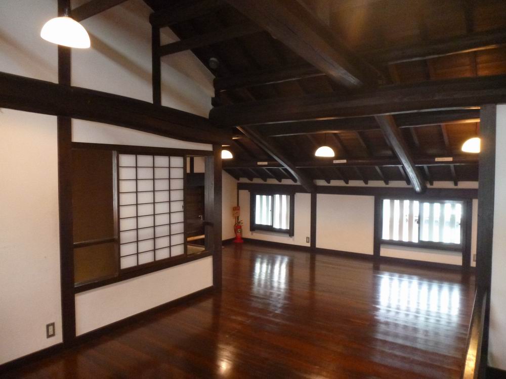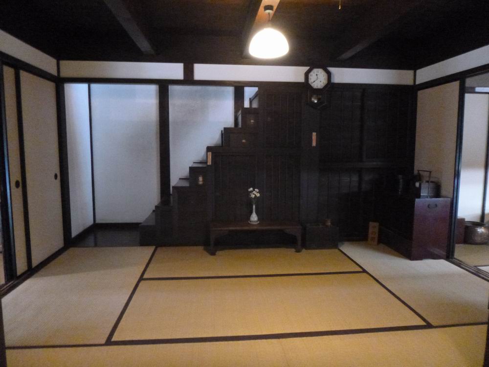 奈良の伝統的な町家を再現して平成4年に建てられました。間口が狭く奥行きのあるいわゆる「うなぎの寝床」になっているのが特長。また、道路側は格子になっていて、外から中が見えづらいようになっています。一階は手前から みせの間、中の間、奥の間そして中庭の向こうが離れという間取り。箱階段を昇って二階へも上がれます。