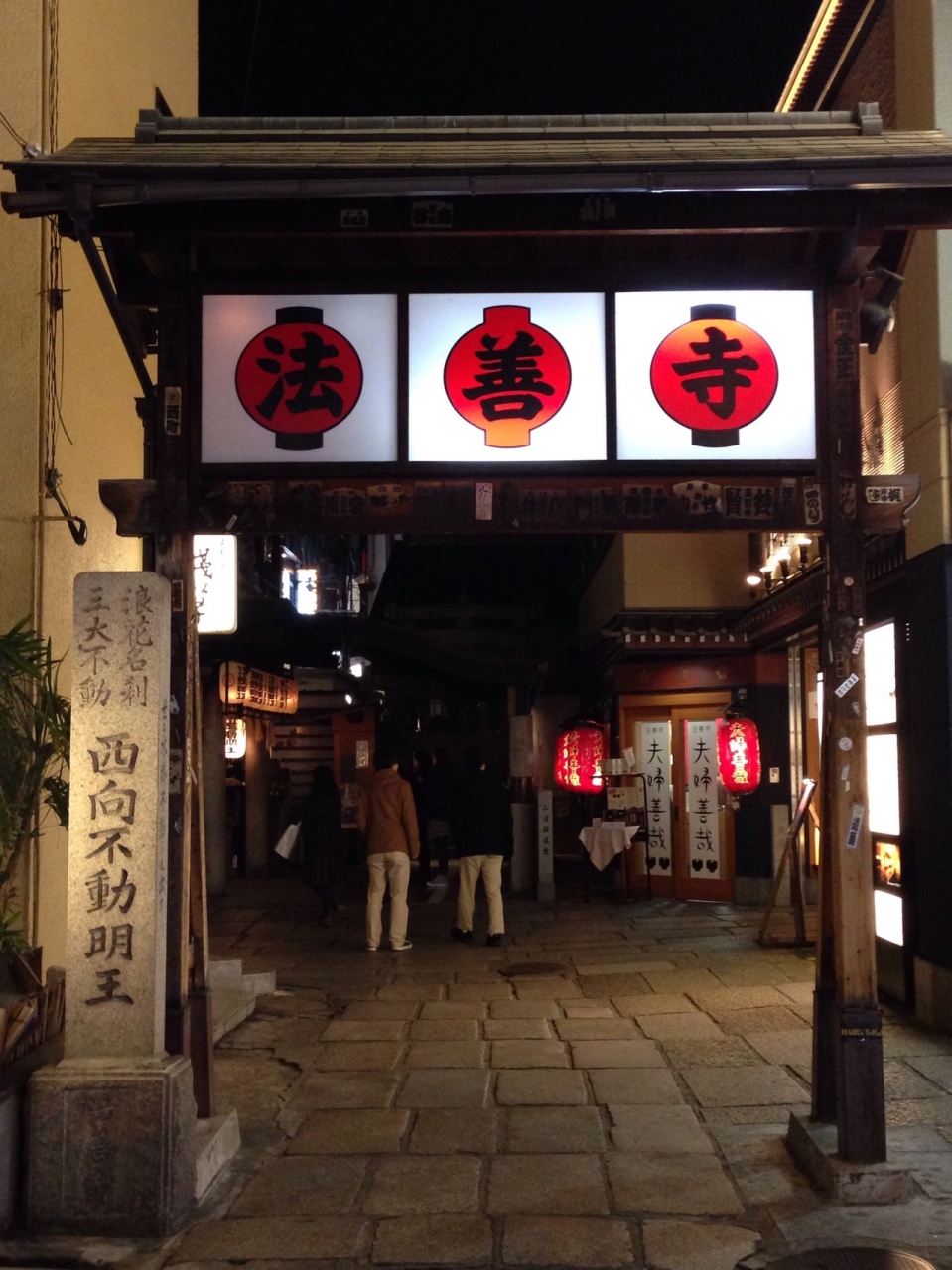 たくさんの赤い提灯が灯る法善寺は情緒のある風景でほのぼのとしています。