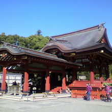 この舞殿は、源義経の妾の静御前が、義経とわかれた京に戻る途中にとられられ、鎌倉に送られたのち、義経を慕い、心を込めて舞ったとされる若宮の回廊跡に建っており、下拝殿とも言われているそうです。