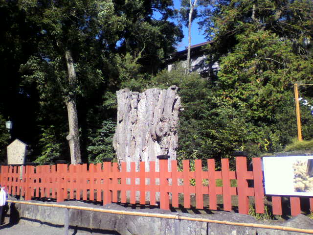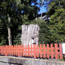 折れた根元からは新芽が芽吹いて、現在成長中。折れた幹も、元の場所のすぐ左側に据え付けられ、どちらも「ご神木」として、お祀りされています。