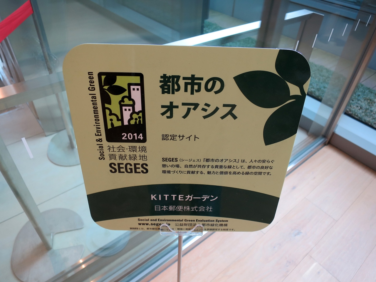 東京駅丸の内南口に隣接した「KITTE」、その吹き抜けの天井部分を利用した屋上庭園が「KITTEガーデン」です。とかく無機質になりがちなビルの屋上部分ですが、そこに植物や芝生が植えられているため、都会のど真ん中でありながら柔らかな雰囲気を覚えました。「KITTEガーデン」の目の前には東京駅の赤煉瓦駅舎、左手には丸の内のオフィス街から皇居、右手には近代的な八重洲駅舎から日本橋方面まで見渡せます。デートの〆にも良いでしょうねぇ。