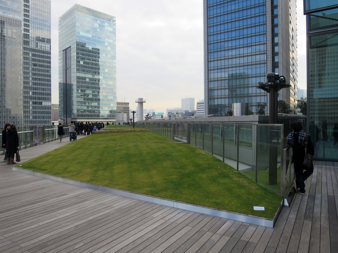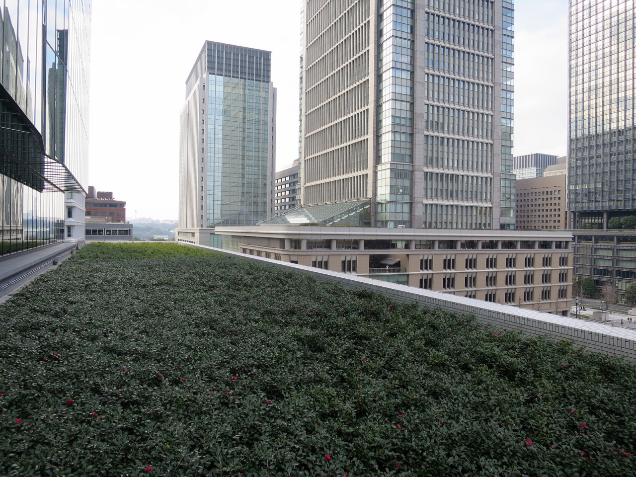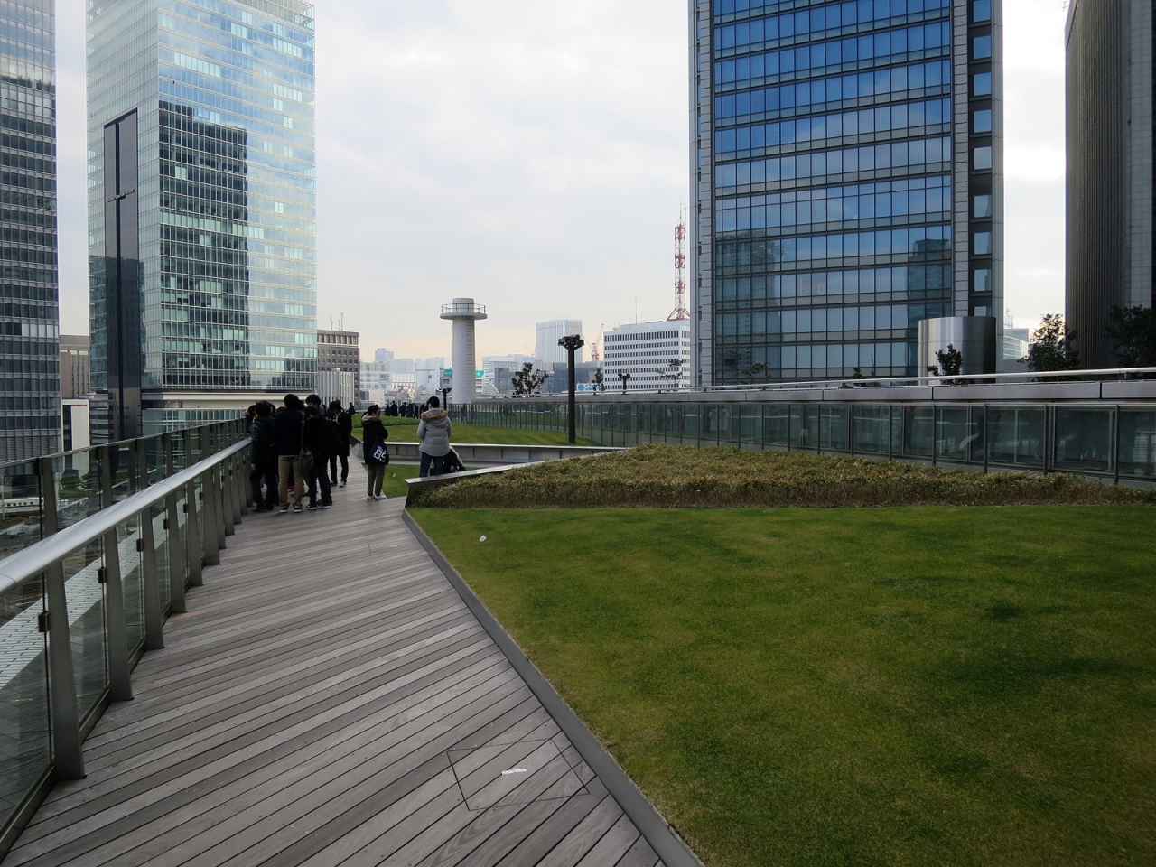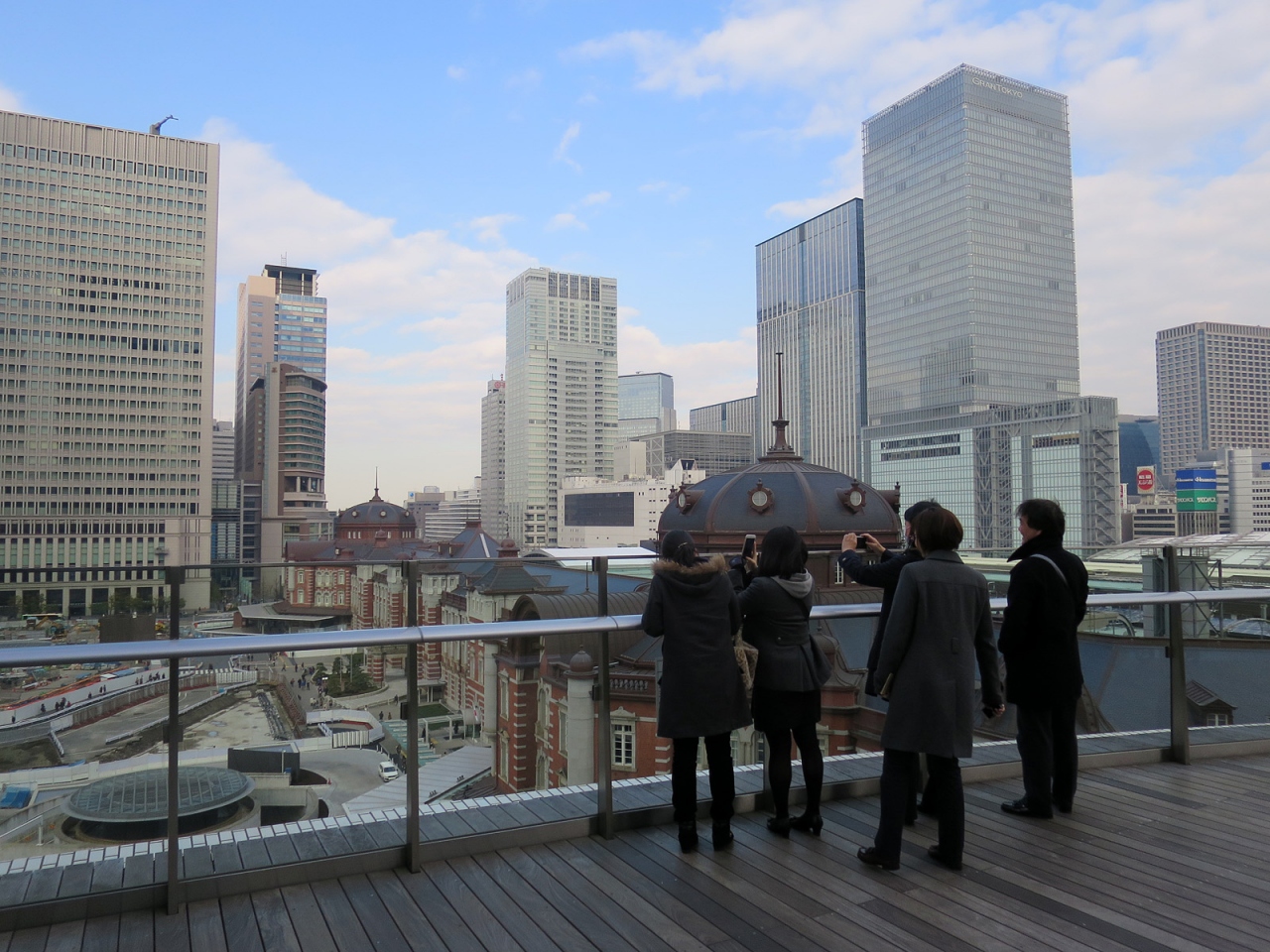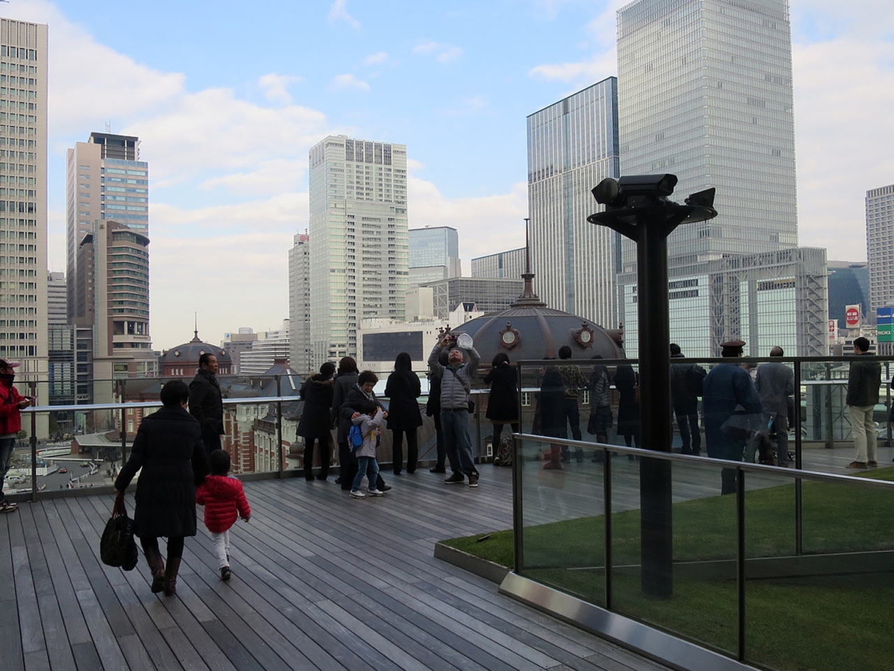 - 芝生が植えられた屋上庭園からは目の前に東京駅、丸の内のオフィス街、そして八重洲までも見渡せる絶景が楽しめました
