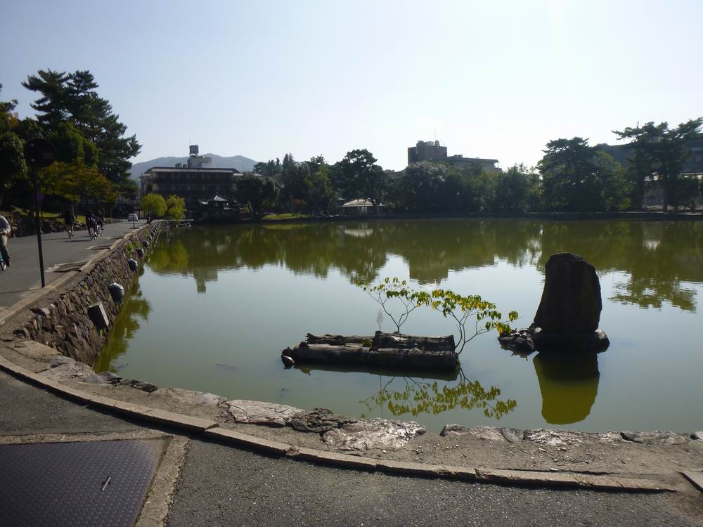 猿沢池は興福寺のすぐ南に位置しています。近鉄奈良駅から歩いて5分くらい。池だけ見る分にはごく普通で、水自体も濁っていてきれいではありませんが、池越しに興福寺の五重塔は絵になる風景です。基本的に通りすがりにちょっと寄る感じでしょうけど、池の畔にはベンチもあって休憩もできます。