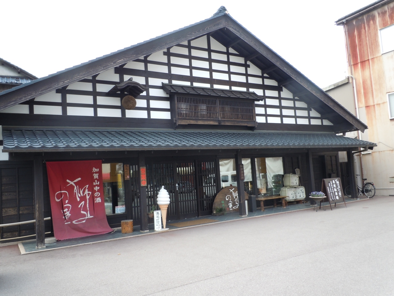 日本酒はまず飲まない私がここへ寄ったのは、スイーツ目当て。酒粕ソフトクリームがあるという事でした。真新しい古民家風の店の前にはソフトクリームのオブジェがしっかりありホッしました。確かにツンと日本酒の香りはしましたが、酔う事はなく(当たり前か。)美味しくいただきました。あっさりした味だったので夏にピッタリかもしれません。