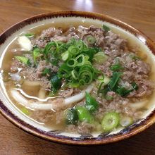 平日のお昼過ぎに行きましたが、並ばず入れました。 店内は狭いので基本相席。 初めてで何を頼んでいいのかわからず、とりあえず名物肉うどんを注文。 周りを見渡すとみなさん卵かけごはんを一緒に頼んでいる様子。 この店ではみんなそうなのか?とすかさず卵かけごはんを追加で注文。 肉うどんは優しいおダシにほんのりあまい肉の味。 これはおいしい!