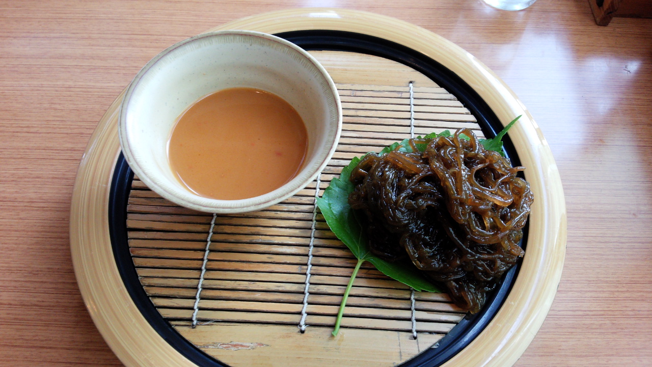 ごまだれと一緒にざるもずくを頂きましたが、沖縄県民なのにこんなに太いもずくは初めて食べましたが、食べ応えがあって美味しかったです。