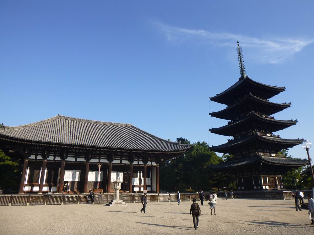 藤原氏の氏寺として勢力を誇り、奈良時代には東大寺、元興寺と並ぶ大寺院。国宝館、五重塔、東金堂、北円堂、南円堂、三重塔など見所が多いので時間をかけて回るといいでしょう。中金堂は再建中でした。