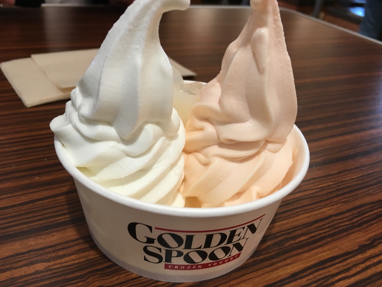 看板に「フローズンヨーグルト」と書いてあったので、ピーチは ピーチ味のフローズンヨーグルトかな?と思って注文しましたが