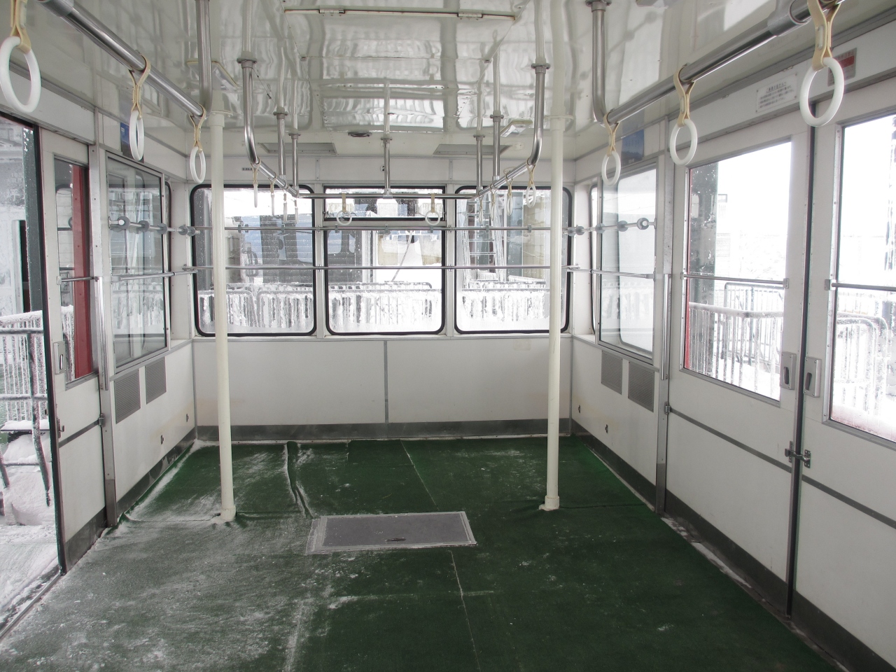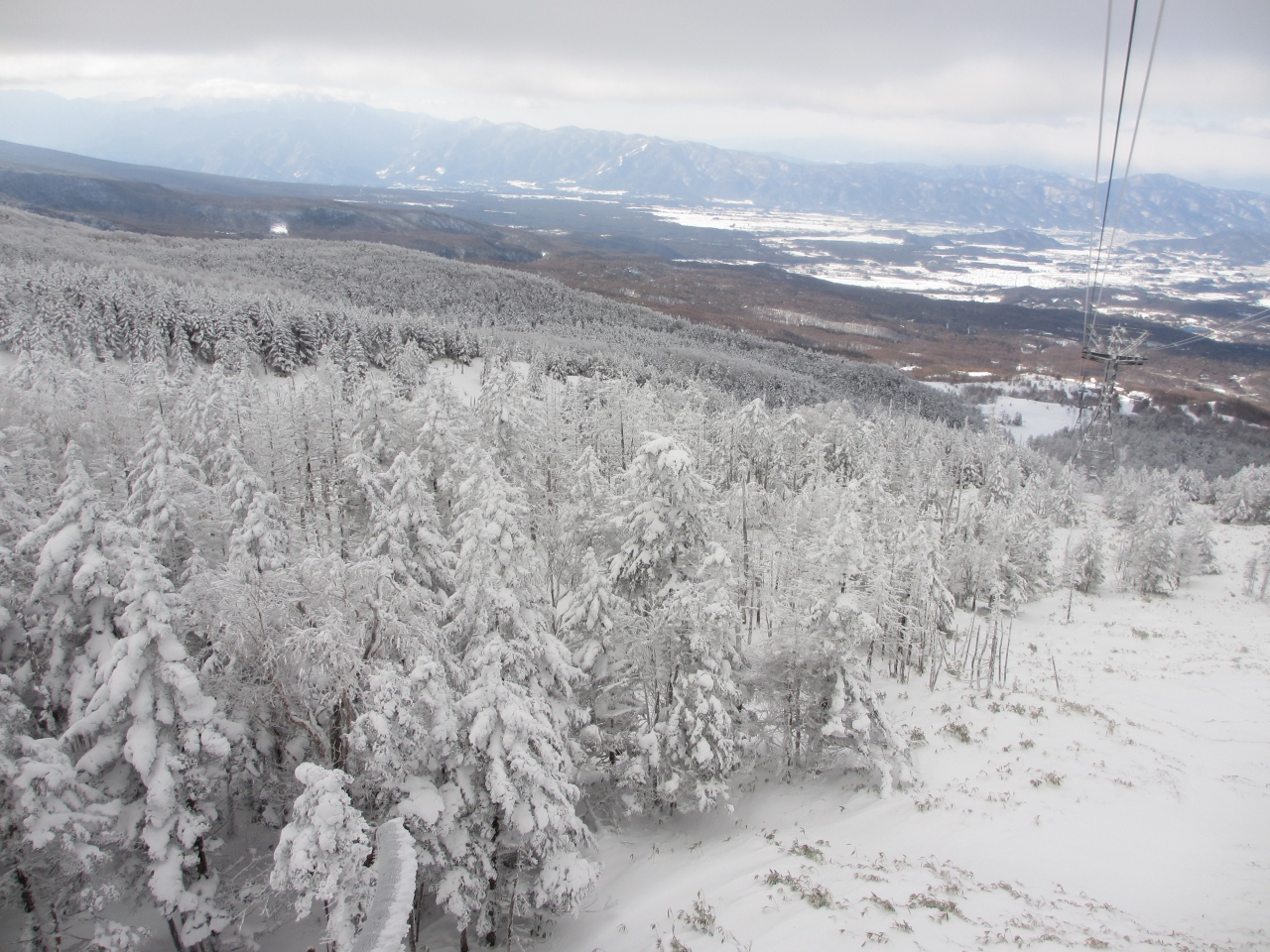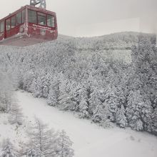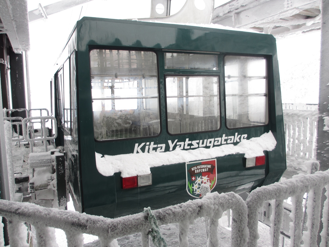 夏は何回も利用しているロープウェイですが、今回ロープウェイ山頂駅にある坪庭の冬景色を観賞するために、朝9時始発のロープウェイに乗ってきました。お客さんはほとんどがスキーヤーとスノーボーダーでした。毛糸の帽子をかぶり、手袋を二重にして完全防備の状態で山頂に向かいました。山頂は、夏の景色とは一変、一面雪、雪、雪。気温マイナス17度には完全防備もほとんど役に立ちませんでした。あまりの寒さにデジカメの液晶画面がひび割れてしまいました。