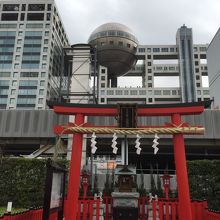 眼前にフジテレビ、背後にレインボーブリッジも拝める都会的な神社です。