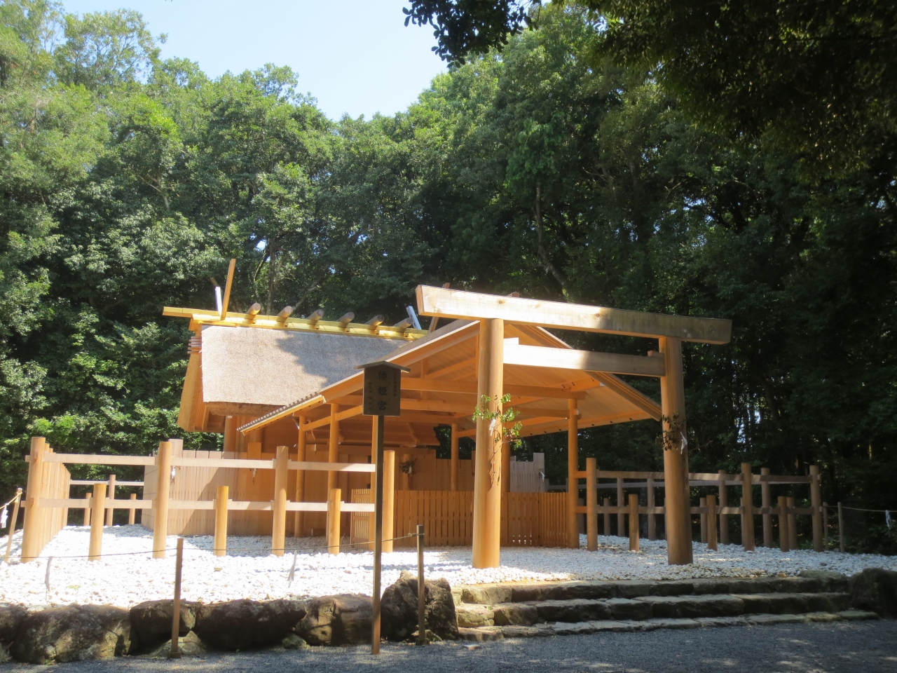 神宮美術館、神宮農業館などが立つ緑豊かな丘陵地帯に立つ別宮。公共交通機関を使うと交通が不便なのでレンタルサイクルを調達。鳥居からの参道が長く、深い森の中に社が佇んでいます。交通の便が悪いせいか、参拝者はほぼ自分だけ、という状態。そのため静かでより神々しい感じがしました。