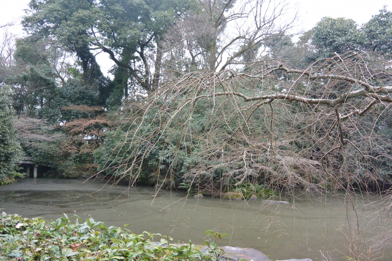 京都御苑の北端・近衛邸跡にあります。池には橋なども架かっているようですが、柵があり中へは入れません。南端にある九条池付近はきれいに整備されているのに、近衛池は水も淀んだ感じで、ちょっと残念。けれど、桜の季節は華やかできれいなのでしょうね。