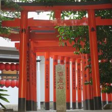金王八幡宮と道路を挟んで隣に位置しています。真っ赤な鳥居が都会のビル群の中では異様なほどに鮮やかです。古くからあるのかと思いきや元々は渋谷駅付近にあったものが昭和36年に遷宮されたものだとのことでした。