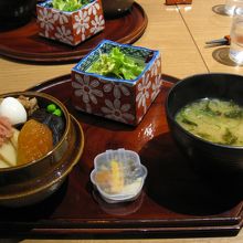 晩御飯で利用しました、今回はコンパクトな定食にしてみました。サラダ・味噌汁・ミニ釜飯のセットです。ミニとなっていましたが私には十分な量で何より温かいので美味しいです、この温かい釜飯を食べてしまうと駅弁として売っている釜飯が食べられなくなりそうです。お店には酒のつまみなどもありました。