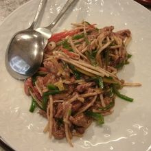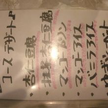 久しぶりにランチに“美食人コース 3000円/人”を頂きました。フカヒレスープ、海鮮サラダ、焼き餃子、海老のチリソース炒め、牛肉とピーマンの細切り炒め、ラーメンOR炒飯、デザートという内容でした。海鮮サラダは5種類の刺身がサラダになったもので新鮮でとても美味しかったです。海老チリは海老が大きくプリプリでよかったし、炒飯も美味しかったです。焼き餃子はニンニク無しを選んだのでパンチがなく、ニンニク有りを選ぶべきと思いました。6種類から選べるデザートで、抹茶杏仁豆腐とマンゴーアイスを頂いたのですが3000円のコースとしては内容的にもボリューム的にもよかったです。