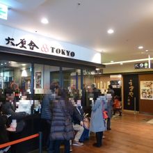 東京ソラマチの6階飲食店街にあるラーメン屋で、他の六厘舎のお店同様に大変な行列が出来ていました。店内もそれほど広いわけではないので、11時すぎると混みはじめ、私が行ったのは11時半ころでしたが、すでに写真の通りの行列でした。