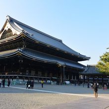 御影堂は東本願寺の中で一番規模の大きな建物で、親鸞聖人の御真影像が安置されています。明治28年完成の建物で近代和風建築として貴重な建物です。誰でも入ることができ、信者でなくともちょっと厳粛な気分になります。
