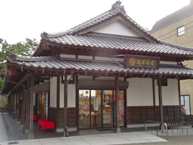 安房小湊の誕生寺の境内にある土産物屋さんの一軒目が亀屋本店です。鯛の浦にちなんだ「鯛せんべい」は名物です。鯛せんべい以外にも千葉の名産品が販売されています。誕生寺に参拝したあとに、ちょっと寄って買い物をするのがよろしいかと思います。