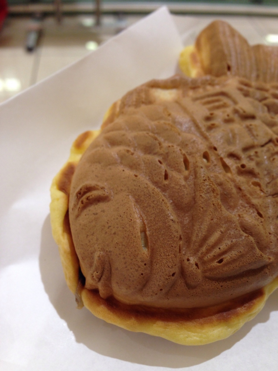 イオンモール大和店 一階。 たい焼きなのに具がお好み焼きな ポスターが見えたので 立ち寄ってみました。斬新!