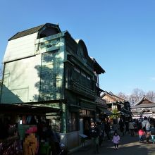 江戸東京たてもの園の中でも、多くの建物が密集して街並みを形作っているエリアにあります。正面のみ銅板で覆われていて看板建築の特徴が顕著に現れています。関東大震災の後、こういった建築が多く作られたようです。