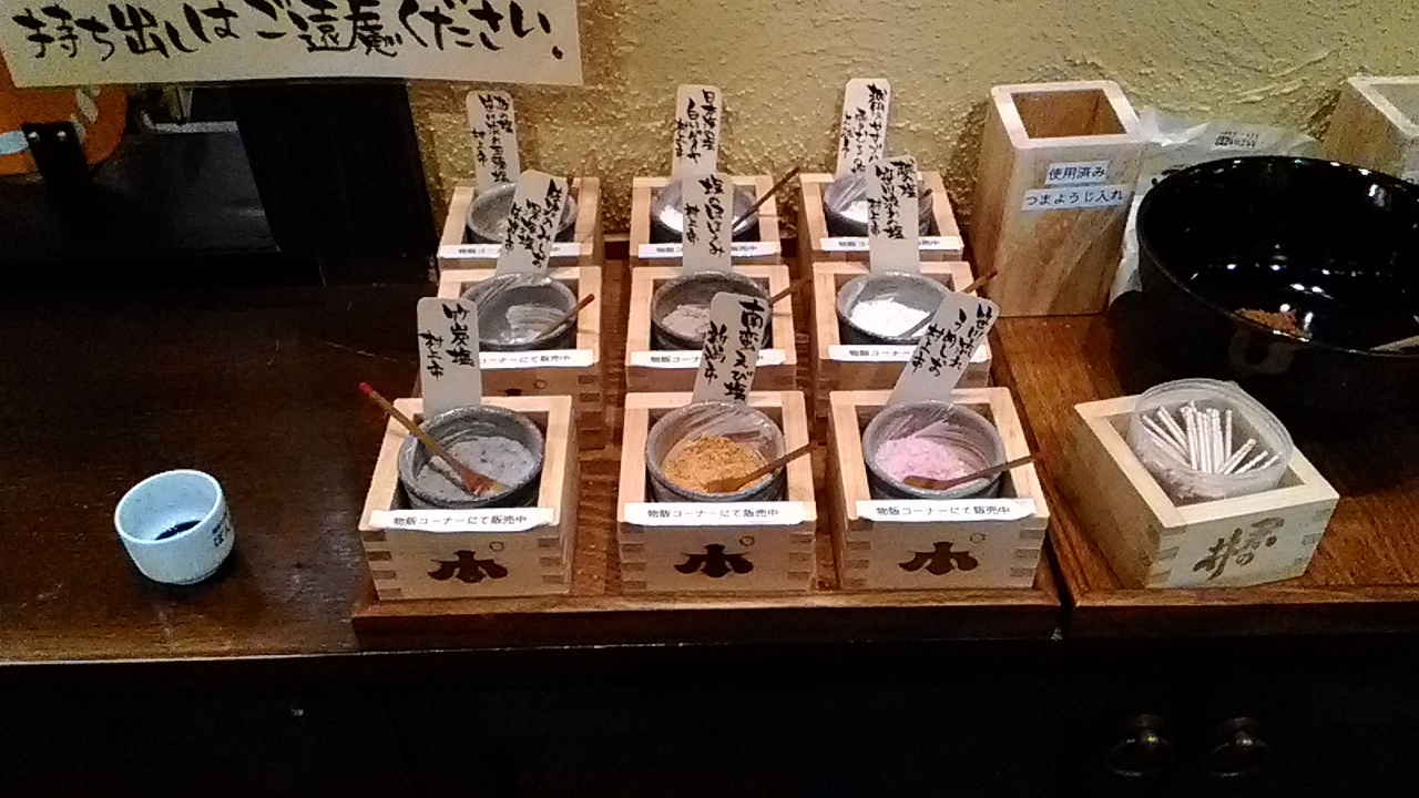 試飲コーナーには新潟産の藻塩も置いて居ますので、塩をなめなめ美味しい酒を味わえます。