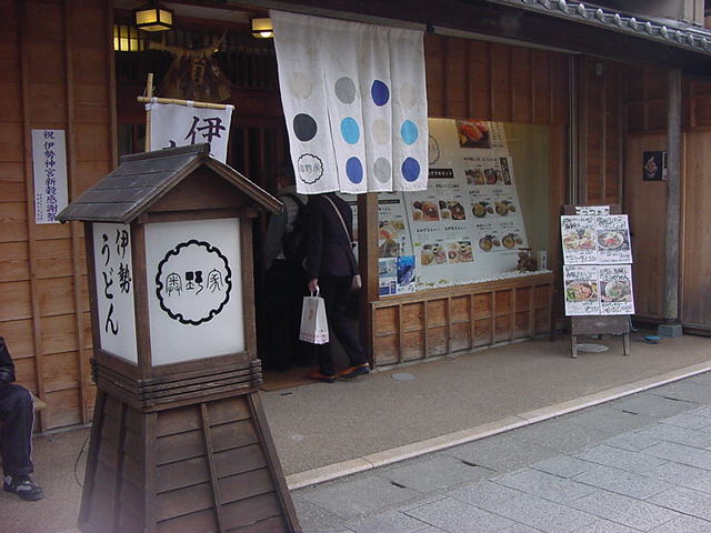 多くの観光客でにぎわう伊勢神宮内宮。浦田駐車場から神社へ向かう参道が「おはらい町」ですが、その中にある飲食店。伊勢うどんのお店ですが、やはり人気なのは伊勢名物を全部食べられるセットです。てこね寿司セットはミニ伊勢うどんとデザートもついてきます。