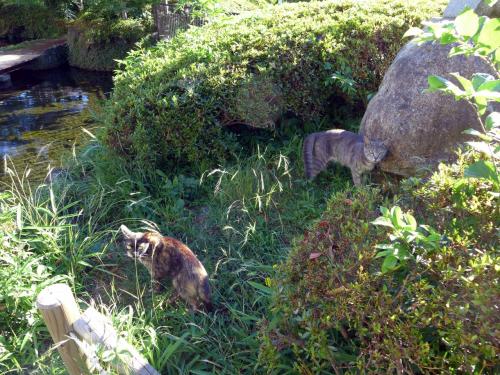 公園内の立入禁止の植え込みには、沢山の猫が澄みついているようで、可愛い姿を見せてくれます。