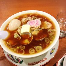 こちらはあさりの入ったラーメンが有名ということでそれにしたのですが、他の人のを見ていると普通のラーメンも京都と同じく黒いスープでした。