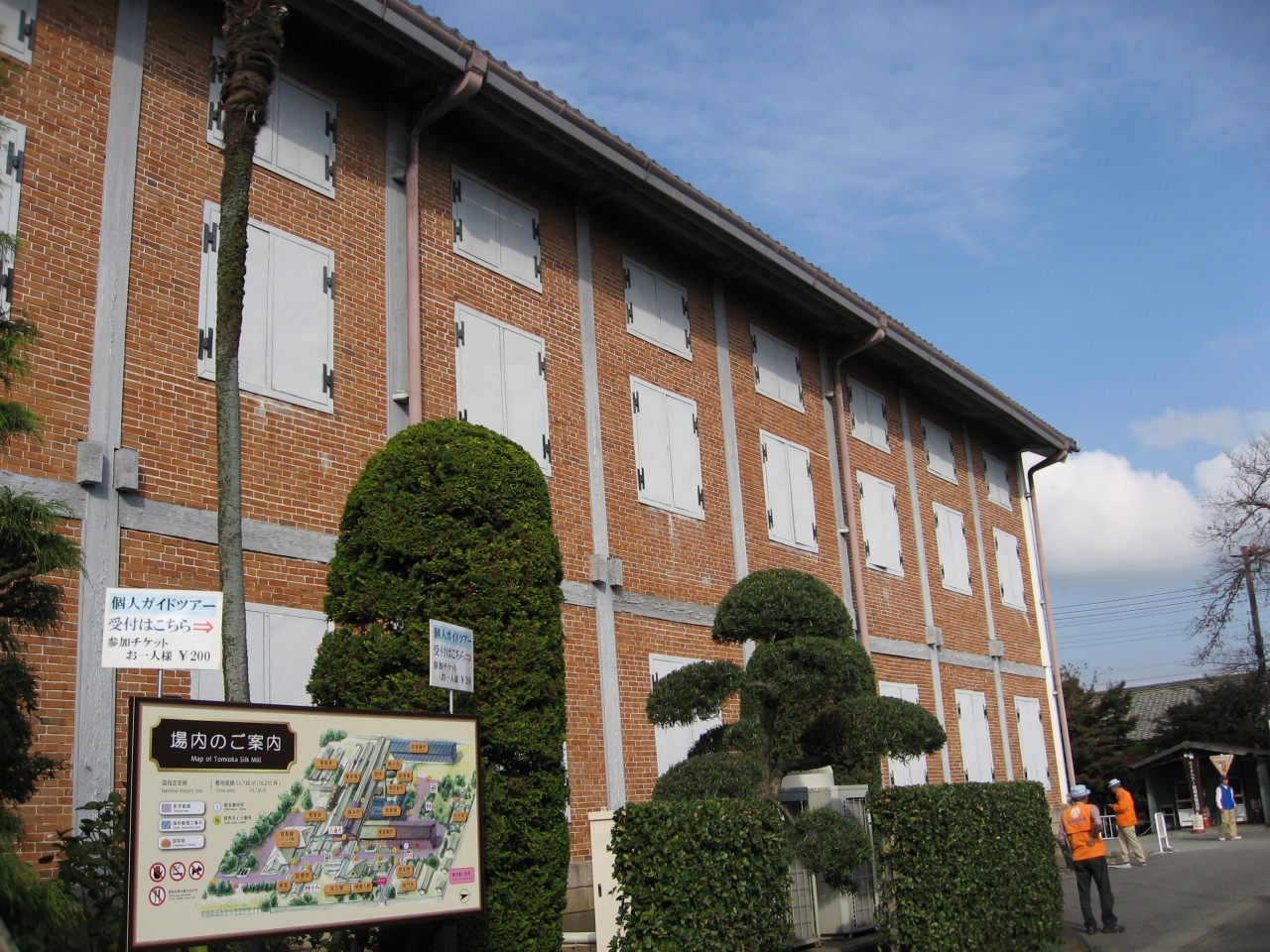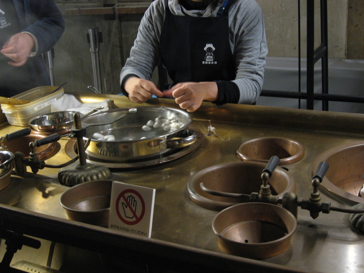 入場すると目の前にある大きな建物です。中には資料の展示・ビデオの上映・お土産ショップが入っています。実際に繭から生糸を取り出す作業をやっていて見学することが出来ました。ショップには素敵な絹製品が売っています。