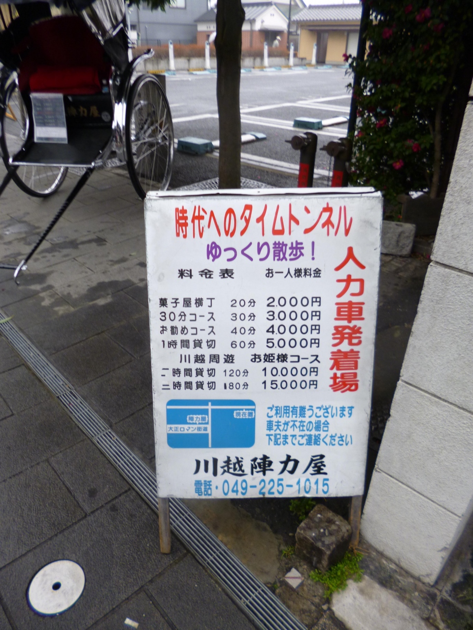 蔵造りの町並みにある駐車場前に“小江戸人力車 川越陣力屋”があります。