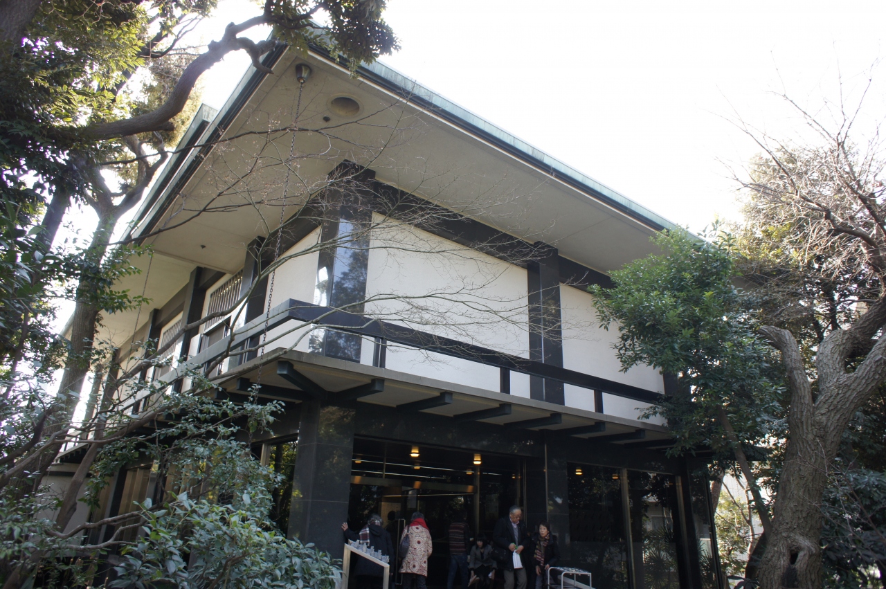 白金台の閑静な高級住宅地を通り抜けるとひっそりと建つ畠山記念館の立派な正門が見つかります。門を入ると、木々が茂る庭が目の前に広がります。本館の途中には茶室も点在しています。荏原製作所を興して名を馳せた実業家の畠山一清の意向で本館の建物が「茶室」に見立てられています。日本建築の要素を随所に取り入れた独特の建物です。展示物は、茶道具を中心に、書画、陶磁、漆芸などの古美術品です。