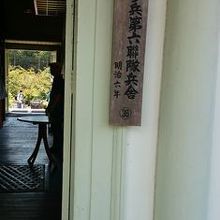 明治村4丁目にある白漆喰塗りの大きな建物です。兵舎内には三八式歩兵銃をはじめ、将校用の制服や小物類などが展示されています。1階の和小物雑貨のお店に、明治35年にドイツのローミュラー氏が提唱した「大巾ハンカチ運動法」(日本では「手拭運動法」)の手ぬぐいが置いてありました。