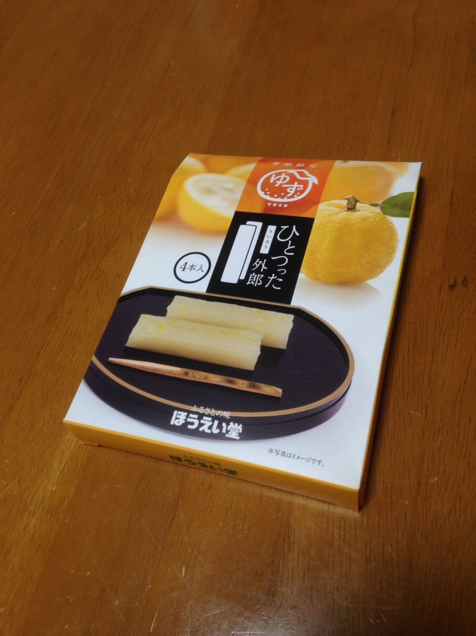 ほうえい堂は山口県のういろうで有名なお店です。お土産やおもたせに利用しています。いつもは定番のあんこのういろうや白いういろうですが今回は夏みかん味をいただきました。ういろうのしっとりもちっと生地はそのままに中に夏みかんの粒が入っていて、それがアクセントになっていて爽やかで美味しかったです。老若男女が好むお菓子なのでオススメです。