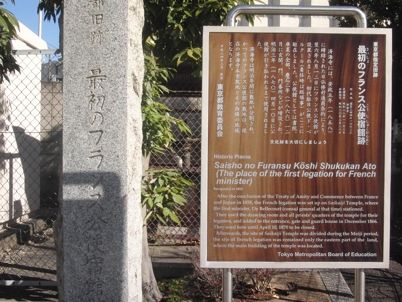 聖坂をあがりきった所にある「済海寺」を入ってすぐ左に記念碑がありました。