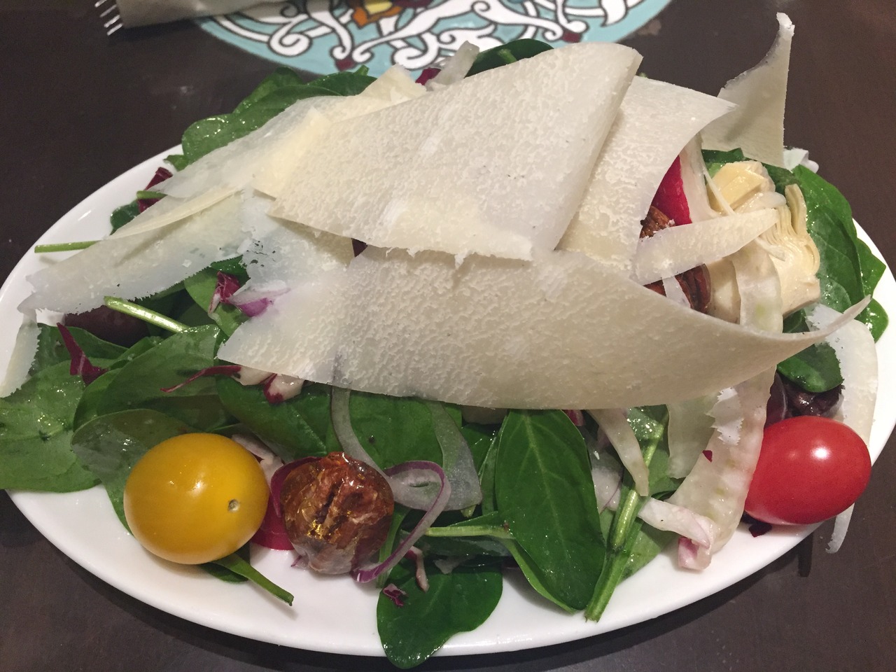 私はファーマーズサラダで友達はチキンサラダでしたが、友達のサラダの上のチキンもかなり立派な量でした。