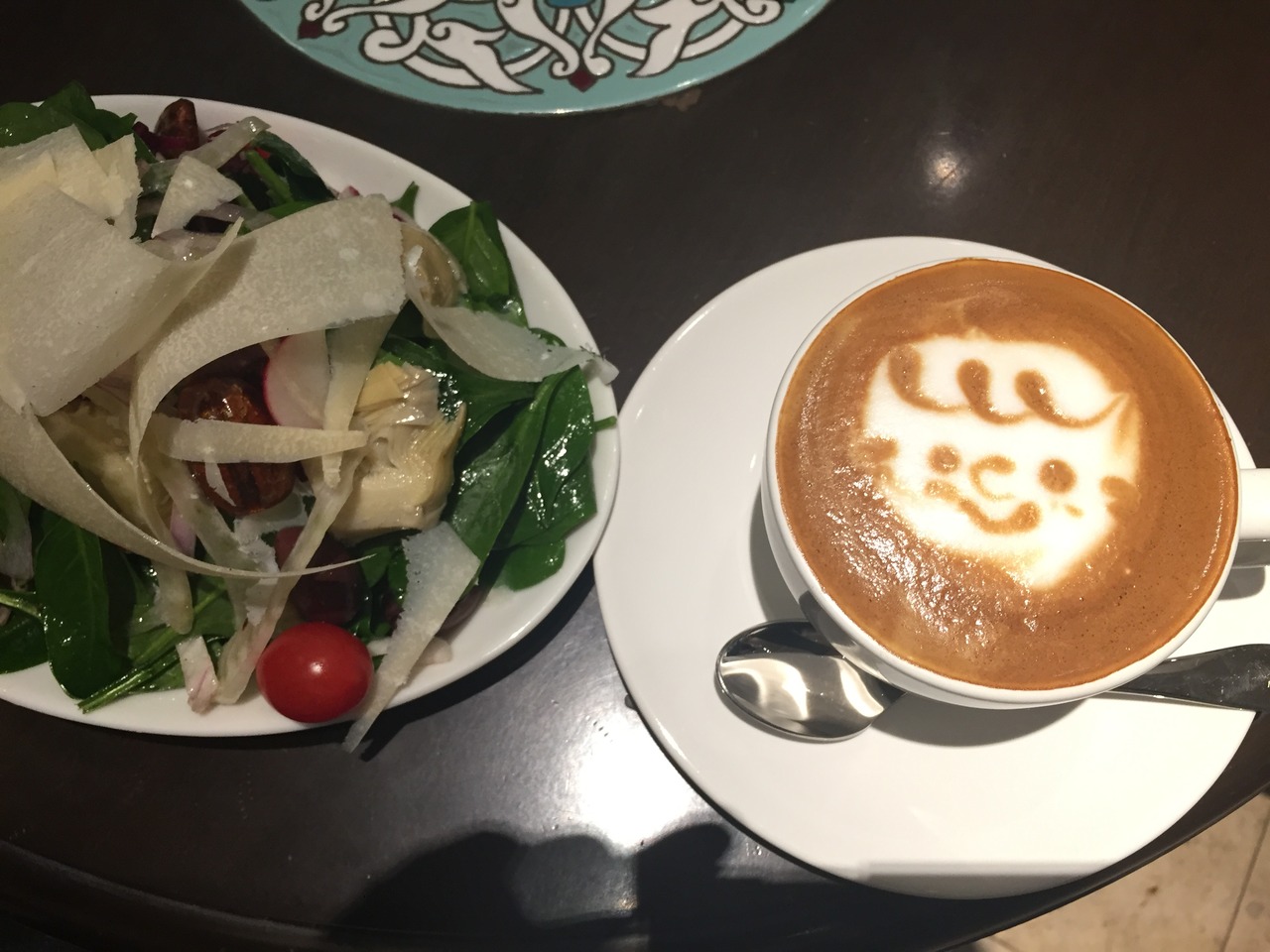 時間も遅めだったので、サラダハーフサイズにホットカプチーノ。