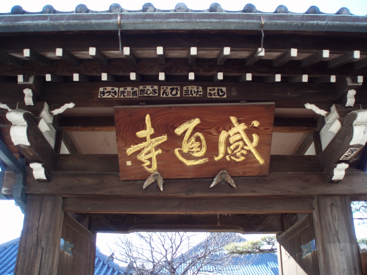 早東京メトロ東西線早稲田駅2番出口、早稲田駅前交差点から夏目坂を登った所の三叉路の先に感通寺ありました。感通寺山門をくぐった境内には国歌君が代に詠まれている「さざれ石」が展示されておりビックリポンでした。広い境内は駐車場か?とってもひっそりとしていて心休まるお寺です。
