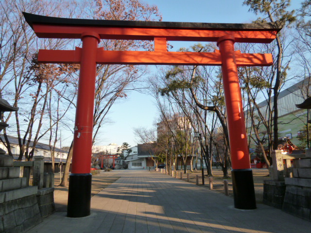 京都駅八条口から東寺に向かう途中にあり、伏見稲荷大社の祭事の際に、御神輿が一時この場所に立ち寄ります。いわば神様の休息所のいった位置づけのようです。そのため、祭事の無い時には赤い鳥居以外には目立つ神殿もなく、閑散としていてもの寂しい位です。