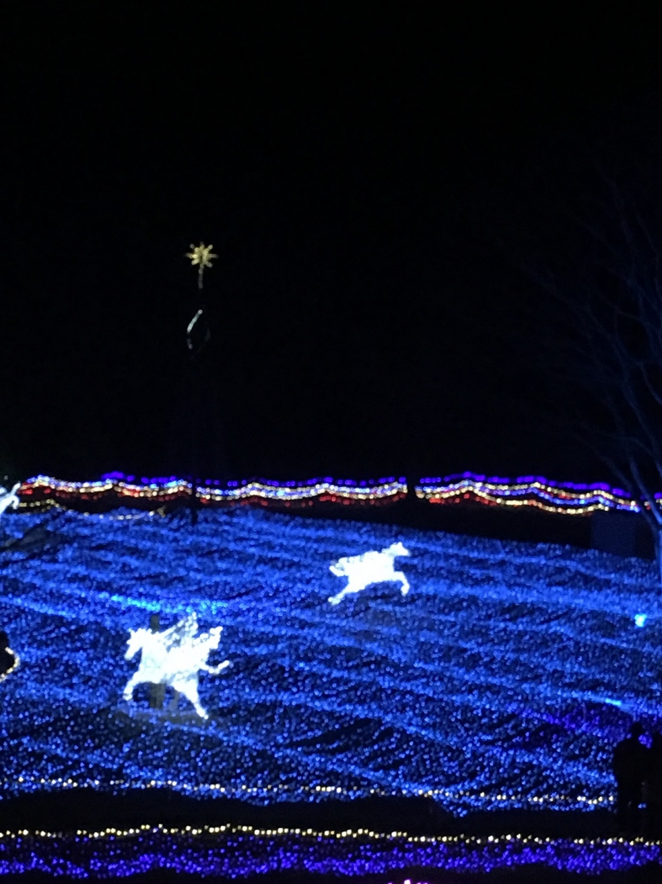 京都府の南丹市のはずれにあり、能勢からの方が行きやすいです。細い道もあり、山の中ですが、冬には大規模なイルミネーションがあります。大規模なもので、特に青の中に光る白い馬や妖精は綺麗でした。土曜日は広い駐車場も一杯でした。