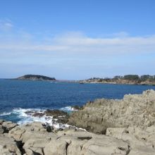 新世代新第三紀の火山活動でマグマが堆積岩層中に貫入して冷えて固まった火山岩が波に削られれて