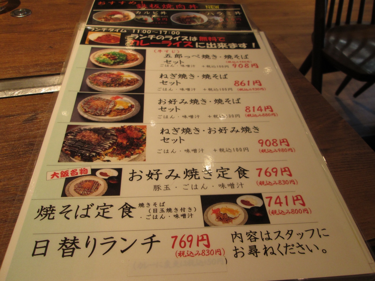 ランチにお好み焼き定食(830円)を食しました。注文をして焼きあがるまで時間がかかります。ランチメニューも人気があるようで、周りはランチメニューを食べています。ボリュームもあり美味しそうです。注文してでてくる時間はランチメニューが早いです。