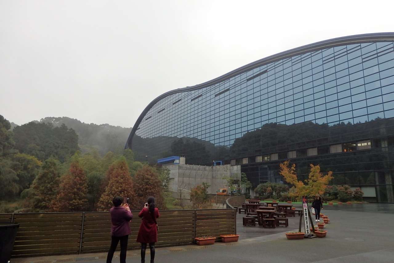 九州国立博物館、山に囲まれてすっくと建つ近代建築。