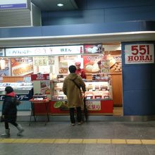 南海電鉄のなんば駅にあります。南海なんば駅構内には4店舗あって、自分が利用したのは、空港特急ラピートが発着するホームのすぐ脇にある店です。他の蓬莱のお店は混雑していることが多いですがこちらは比較的混んでおらず並ばなくて済むので良く利用します。出張で大阪に来る機会が多い中で、自宅へのお土産としてはお菓子類は飽きてしまった中で、こちらはいつまでも飽きることなく満足できるお土産になっています。少し厚めの皮ですが肉汁たっぷりの餡はうま味が凝縮されており、一つで大満足の大きさです。また、いつも買ってしまうのがアイスキャンディーで昔ながらスタイルのもので郷愁を誘います。こちらはすぐに消費します。