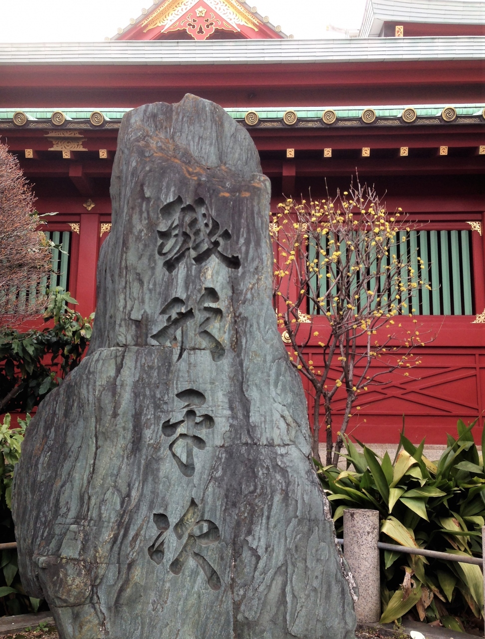 神田明神下に住む岡っ引の平次(通称 銭形平次)が、子分の八五郎と共に推理力と寛永通宝の「投げ銭」をもって事件を解決すると言うテレビドラマの捕物帳でひところ有名だった「銭形平次」の碑がある神社です。