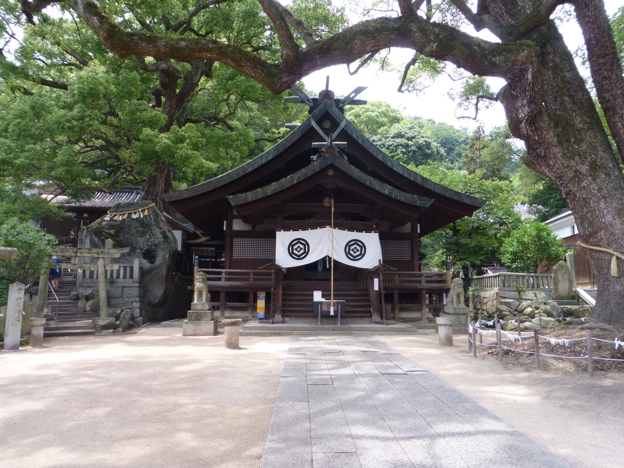 尾道の海岸近くの平地にある神社で、千光寺へ向かうロープウェイの乗り場があります。