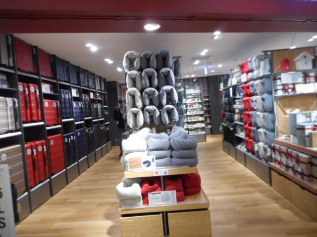 宣伝費を使わず、品質を重視する”無印”は、華美にならず、実用的で気に入っていますので、ソックスなどを購入しています。空港内のショツプは、旅行用品もあり、持参するのを忘れた”ネックピロー”を買うことができました。