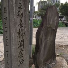 石碑には、櫛淵彌兵衛宣根の先祖に伝わる香取神道流から、神道一心流を興すに至るまで、簡略に記されていますが、読めません…